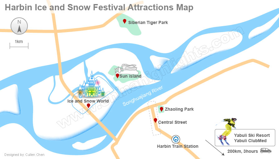 Central Street (small snow and ice sculptures): Open all the time, small snow and ice sculptures start to appear in the middle of December, if lucky enough, you will have a chance to see how people make the snow sculptures.